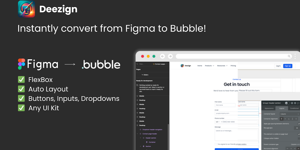 Deezign - Instantly convert Figma designs to Bubble | Product Hunt