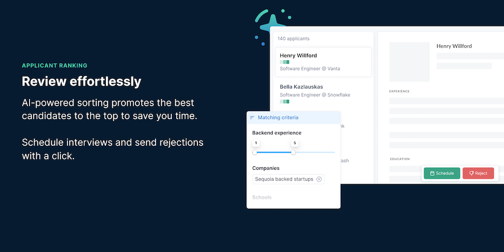 AI Applicant Sorting - Chat-powered assistant to help you review resumes 10x faster | Product Hunt