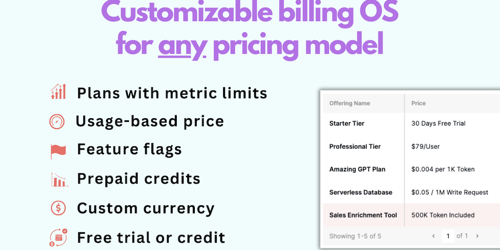 The automated billing platform for any pricing model: tiered plan, metrics with limits, usage-based, or recurring subscriptions. Set up your SaaS billing stack with zero effort and scale with develope