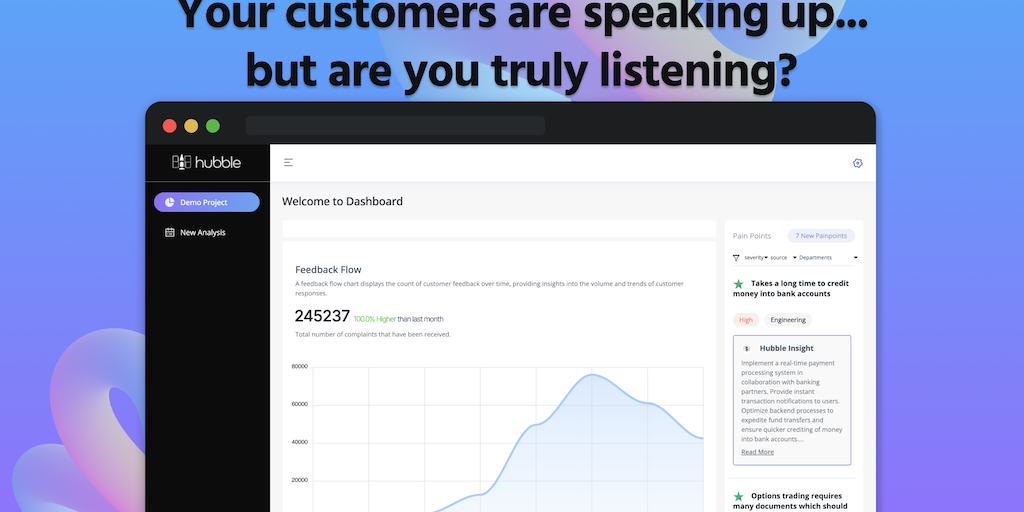 Decode customer needs from Twitter, App Store, and Play Store with Hubble.cx. We analyze feedback for actionable insights, helping businesses build products that meet customer expectations.