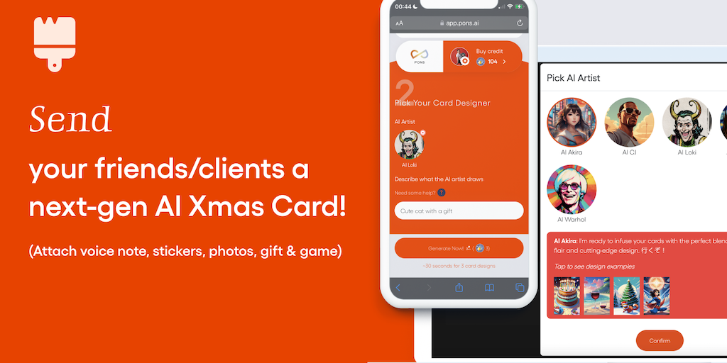 PONS.ai - Send your friends/clients a next-gen AI Xmas card | Product Hunt
