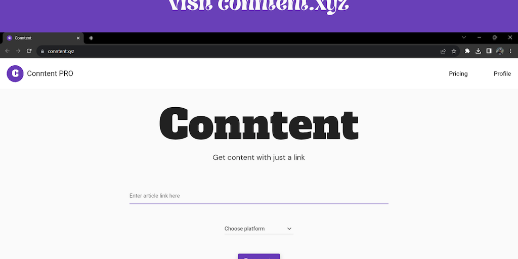 Conntent lets you generate content for various platforms like LinkedIn, X, Blogposts, etc out of any online article or news using just its link.