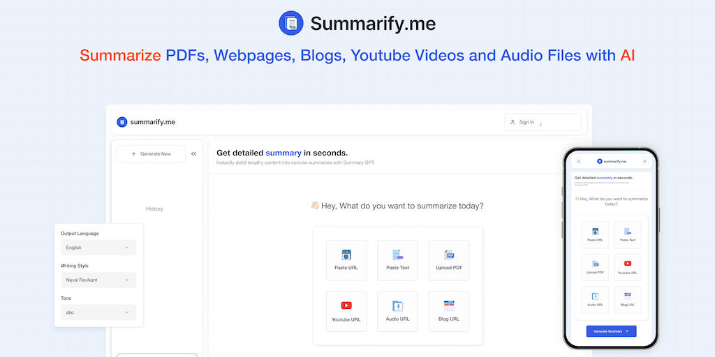 Summarify - Summarize PDFs, webpages, Youtube videos, blogs & more | Product Hunt