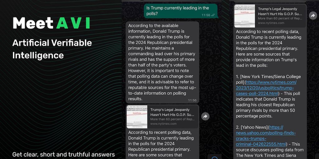 Do 10 minutes of research in 10 seconds. Avi (artificial verifiable intelligence) is your free, powerful research assistant. Avi verifies ideas, claims and facts and shows you the sources when you nee